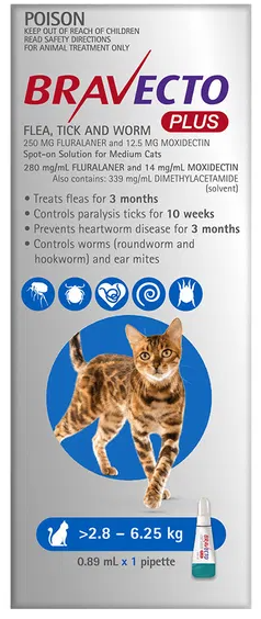 Bravecto Plus for Cats 2-6kg - 1 Application (Dark Blue)