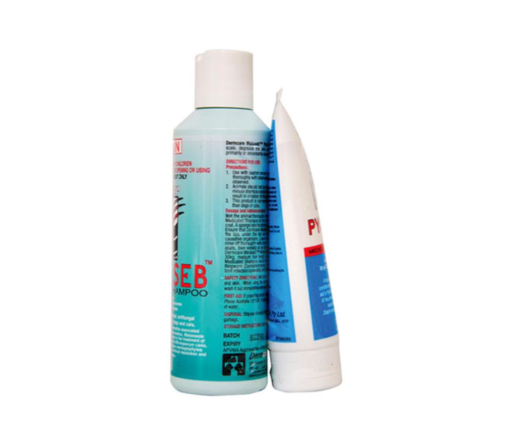Discover the perfect solution for your pet's skin care with the Malaseb 250ml and Pyohex 200ml Combo Pack. This powerful duo is designed to maintain healthy skin and coat while addressing various dermatological issues.