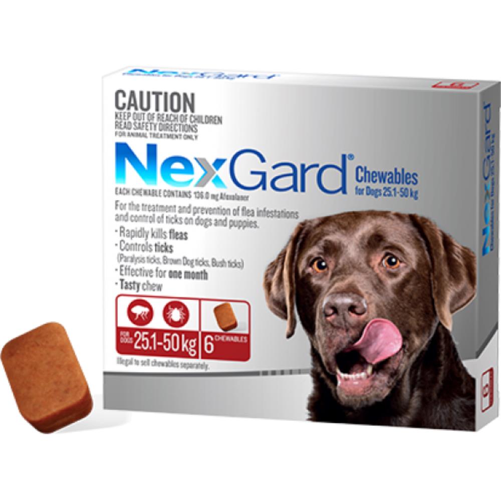 Nexgard Chew XLarge (Red) is a powerful and effective flea and tick treatment designed specifically for larger dogs weighing between 25.1 to 50kg. These tasty, chewable tablets provide a convenient solution for pet owners seeking to protect their furry friends from parasites.
