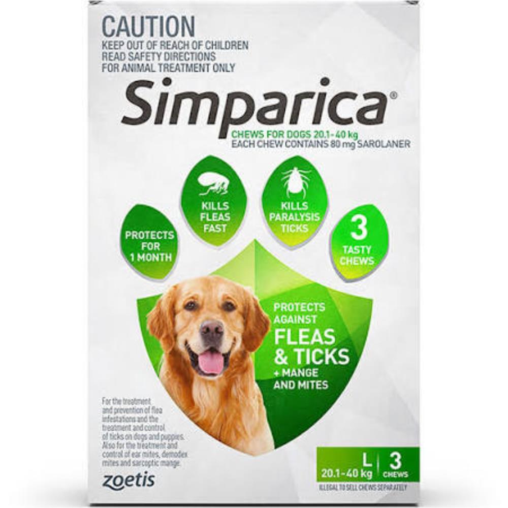 Ensure your furry friend stays protected with Simparica, designed for dogs weighing between 20.1 to 40 kg. This effective solution offers a range of benefits for a healthy, happy pet.