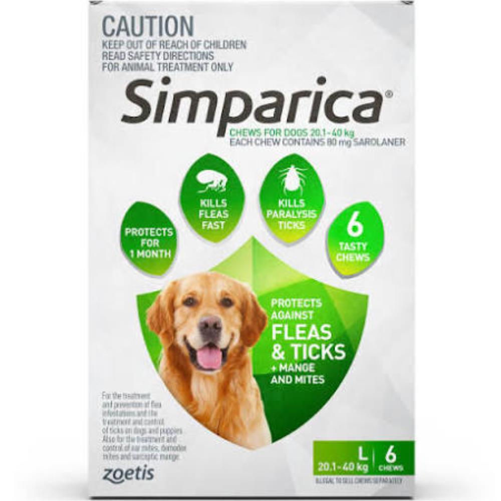 Simparica is a revolutionary chewable flea and tick treatment designed specifically for dogs weighing between 20.1 and 40 kg. This product effectively protects your furry friend from parasitic infestations, ensuring they stay healthy and happy.